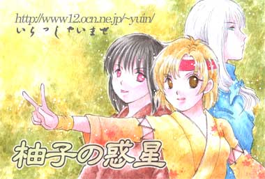 | 2005年9月から翌年3日までトップを飾っていたイラスト。 前回、「遊乱前線」主人公側の松影、盃、舜応のイラストを描いたので、敵側。 左が宴。えん、と読みます。女子に見える男子。 中央は雁。かり。 右側の銀髪が霜。しも。 アナログ作業が終わってから、雁の右顔面には酷い傷跡があって、髪で隠しているという設定を思い出し・・(汗)。 作ってから、かれこれ15年ぐらい経つキャラなので、発酵どころか腐敗しているかも。 くは。 サイト名が入ったバージョンはこちらでご覧になれます。 htmlになってないので、そのままブラウザの戻るボタンでお戻りください。 | |